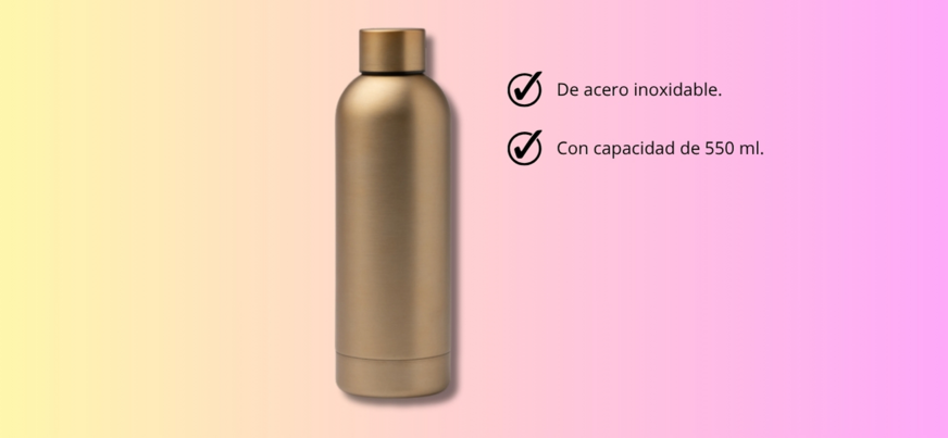 Disponible en una variedad de colores —blanco apto para sublimación, negro, plata, oro, rosa dorado, azul royal, rojo—, este bidón ofrece una plataforma ideal para la personalización con logotipo o mensaje de marca, convirtiéndolo en un excelente recurso para campañas de marketing, regalos corporativos o merchandising. Su formato de 550 ml permite transportar una buena cantidad de líquido sin comprometer comodidad ni estilo.