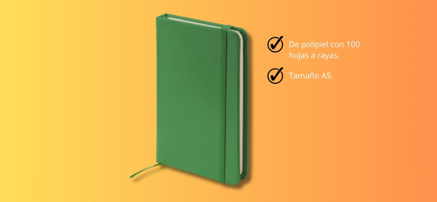 Bloc de notas ARDAK tamaño A5 (15x20cm) con cubierta rígida y diseño elegante, interior con hojas cuadrículadas y marcador integrado. Ideal para tomar apuntes, planificación o como regalo corporativo.
